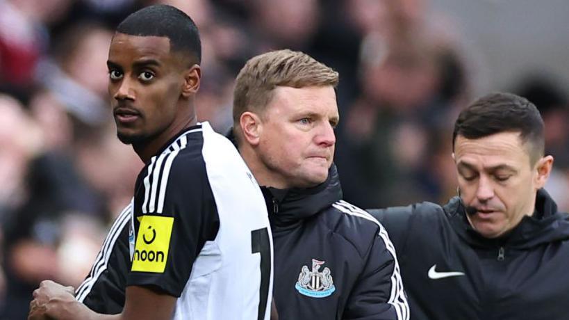 Getty ImagesCiaran KellyNewcastle United reporter at St James’ Park21 minutes ago45 CommentsEddie Howe says it is “clear” that he “can’t involve” Alexander Isak at Newcastle United as things stand.Newcastle rejected a £110m bid from Liverpool last week after the striker wanted to explore his options.Isak missed Newcastle’s pre-season tour of Asia with a “minor thigh injury”, but the 25-year-old went on to train alone at former club Real Sociedad.Howe previously warned no player could expect to act “poorly and train with group as normal”.Howe has not closed the door on Isak one day representing Newcastle again – but the head coach stressed on Friday that the situation “had to be right for that to happen”.”We’ve had discussions and it’s clear at the moment that we can’t involve him with the group,” he said after Newcastle’s 2-2 draw against Espanyol. “I don’t know how long that will be for, but that’s the latest.”Howe confirmed Isak, who has no current fitness issues, had not been disciplined.But the Sweden international has been instructed to train at a later time to the rest of his team-mates in Newcastle.”I’d want Alex to be playing today,” Howe added just eight days before the season opener at Aston Villa. “I’d want him training tomorrow. We would love the player to be with us.”Let me make that absolutely clear. There’s no part of me that doesn’t want that outcome, but I don’t see the current situation changing for Aston Villa.”Turbulent summer for NewcastleA lot can change in two and a half months.Isak was among those players celebrating in a jubilant huddle as the Champions League anthem played out at St James’ 75 days ago.Newcastle had just secured their place at Europe’s top table and it felt like the club had real momentum going into the summer.However, this has proved a frustrating window for Newcastle, who have missed out on Benjamin Sesko, Hugo Ekitike, Joao Pedro and James Trafford.Then there is the Isak situation.It fell to William Osula to play up front on Friday and Anthony Gordon, who is a winger by trade, is set to follow suit against Atletico Madrid a day later.Yet Isak’s absence, and a lack of signings, has not completely soured the mood on Tyneside. Saturday’s friendly is a sell-out and, despite this game against Espanyol taking place less than 24 hours beforehand, there were still 30,782 fans present.They already have an eye on what is to come.”Is this the way to Barcelona?” supporters in the Gallowgate chanted. “Bayern Munich? Lazio? Roma? The Champions League awaits for me.”What information do we collect from this quiz?Ramsdale catches eye on debutNewcastle clearly require further reinforcements to cope with the rigours of Europe, but a couple of new arrivals did still impress on Friday night.Goalkeeper Aaron Ramsdale, who joined on loan from Southampton, made his debut for the club while youngster Seung-soo Park played his first game at St James’ following his move from Suwon Samsung Bluewings.One of Ramsdale’s first tasks of the night was to pick the ball out of the net after Edu Exposito put Espanyol in front with a long-range strike in the 17th minute.But Newcastle responded.Just a few minutes later, Lewis Miley’s scooped cross to the back post was met by the head of Matt Targett.Espanyol had a chance to retake the lead after Targett brought down striker Roberto Fernandez inside the box just before half-time.However, Ramsdale guessed right and kept out Espanyol captain Javier Puado’s spot-kick to loud cheers before Jacob Murphy put Newcastle in front after the break.Ramsdale went on to make a fine save to deny former Blackburn Rovers winger Tyrhys Dolan late on.But there was still time for Kike Garcia to score an equaliser as Newcastle’s wait for a pre-season win goes on.Three or four signings are neededPark, meanwhile, was lively down the left-hand side and the winger was applauded off the field after being taken off in the second half.The South Korean may not have necessarily expected to be heavily involved with the first team so quickly, but Howe has had few options in a number of positions.Take midfield, for instance.Newcastle sold Sean Longstaff to Leeds United last month, while Joe Willock suffered a calf injury, which will keep the midfielder out for between four and six weeks.Joelinton and Sandro Tonali were kept back for the visit of Atletico Madrid so it fell to Targett to fill in alongside captain Bruno Guimaraes and Miley.Targett shifted back to his favoured position in the second half after youngster Alfie Harrison replaced Lewis Hall, who is continuing to build up his minutes after breaking a bone in his foot.But this was a timely reminder that not only do Newcastle need a centre-back and at least one striker before the window shuts next month, but they also need another midfielder.Otherwise there is the very real possibility that Howe will have to be creative and field players out of position over the course of the campaign.The clock is ticking ahead of the window shutting on 1 September.Related topicsPremier LeagueNewcastle UnitedFootballAdblock test (Why?)